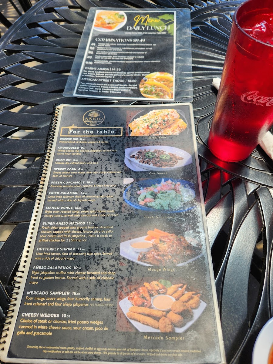 At Anejo Modern Mexican Cuisine, located in Olathe, KS, the culinary journey promises an exciting blend of traditional flavors and modern twists. The menu features delectable offerings perfect for sharing, such as the Mercado Sampler, which combines mango sauce wings, butterfly shrimp, and fried calamari, available for only $18.99.